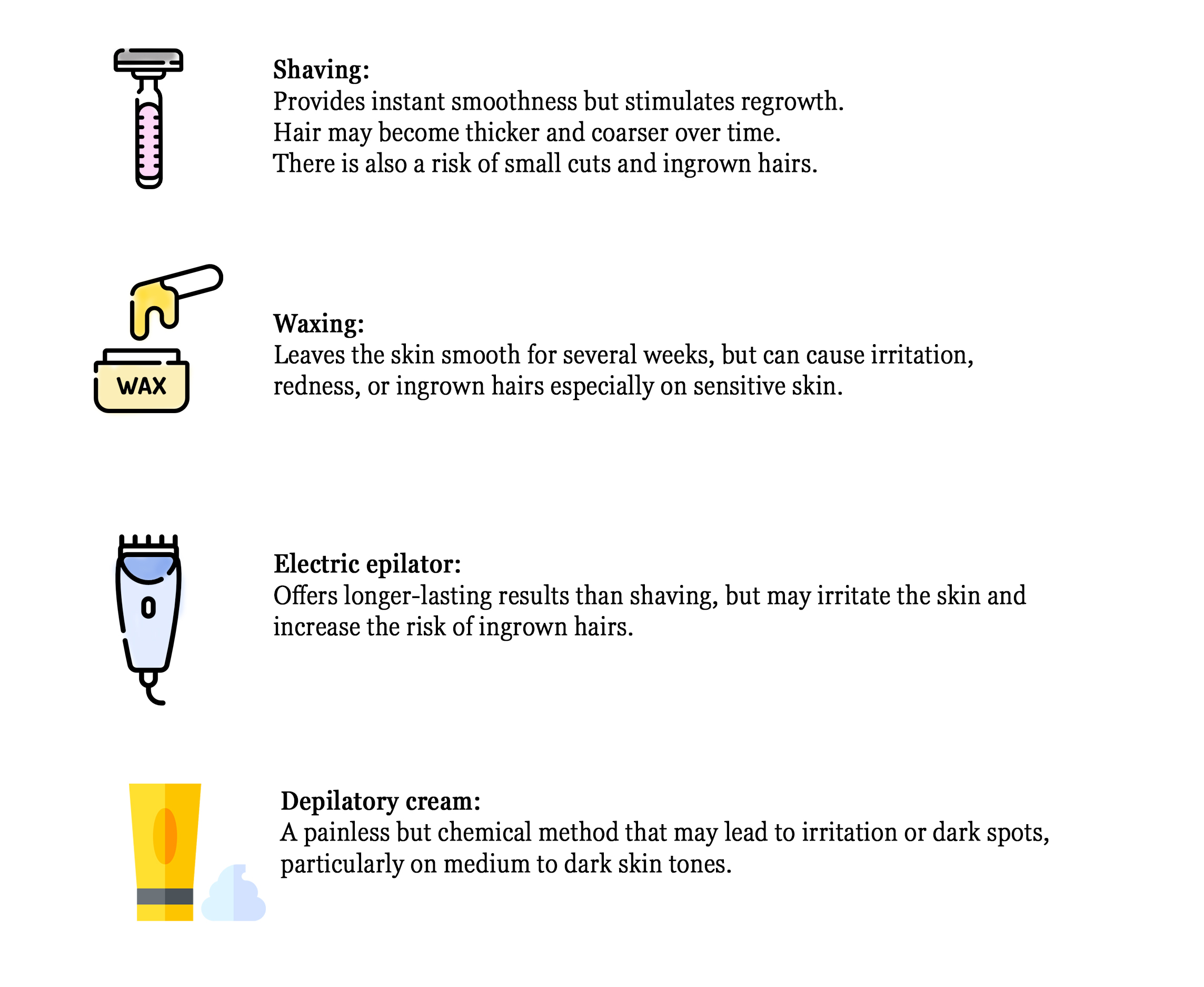 Whatever hair removal method you use, and even during laser sessions, we recommend :